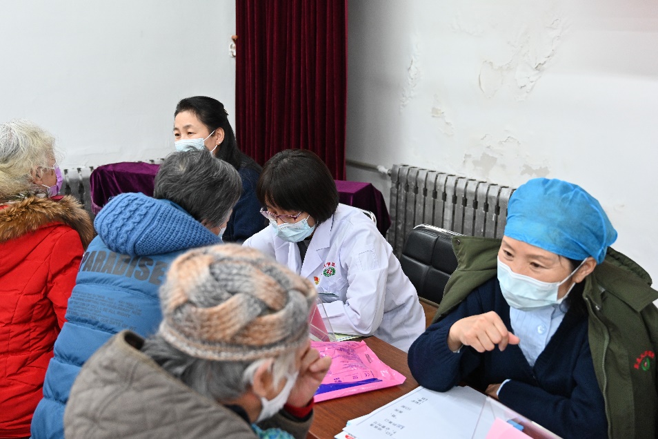 活动现场,医生详细询问离退休老师的身体情况,针对存在的健康问题,提出合理的诊疗建议,护士耐心细致地为老师量血压、测血糖等,药师对老师平时用药进行详细的个性化建议和指导。