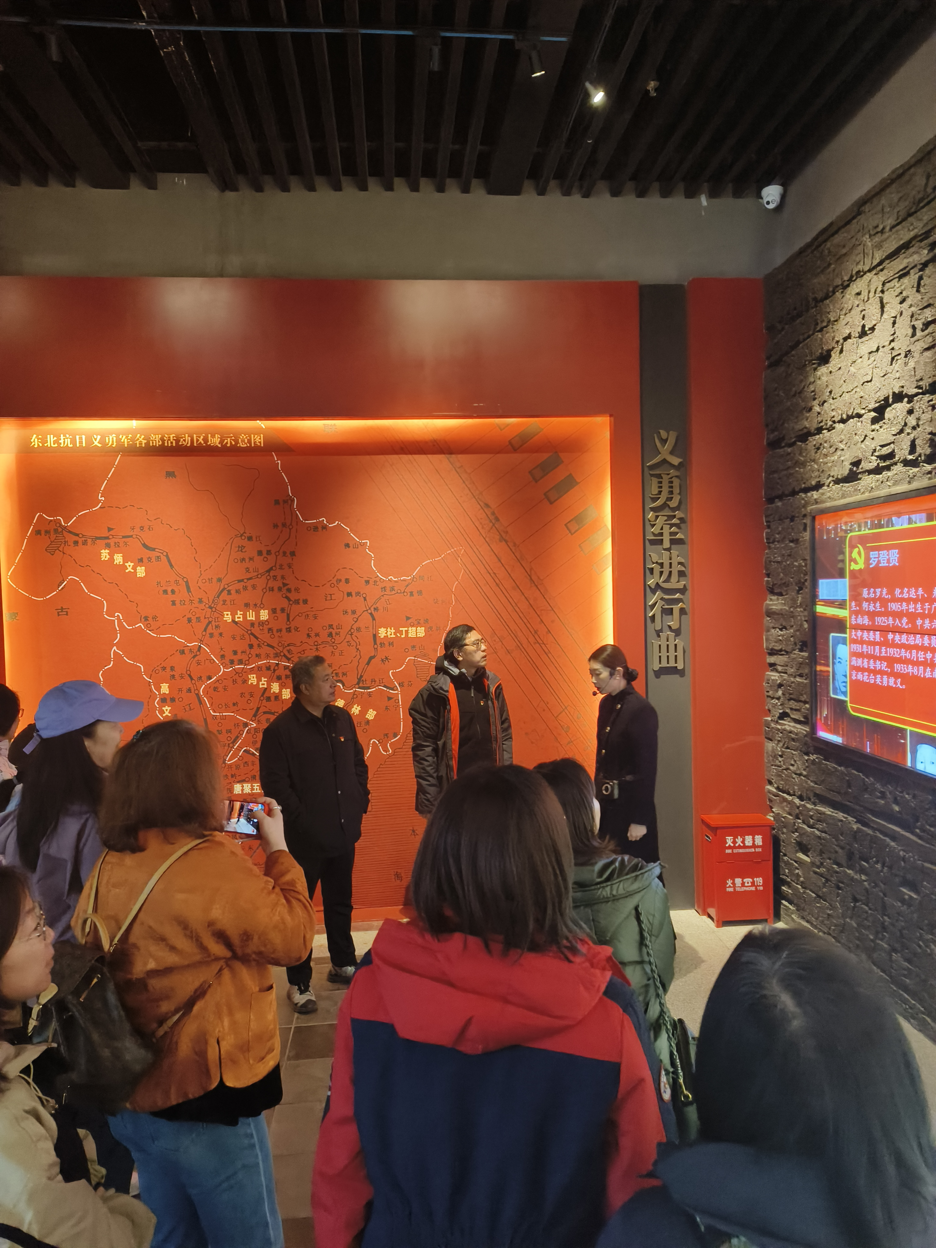 东北抗联史实陈列馆于2005年7月29日正式开工建设,共分序厅、主展厅、英烈厅三个部分,展厅共有12个展室,党员跟随讲解人员参观各个展区。