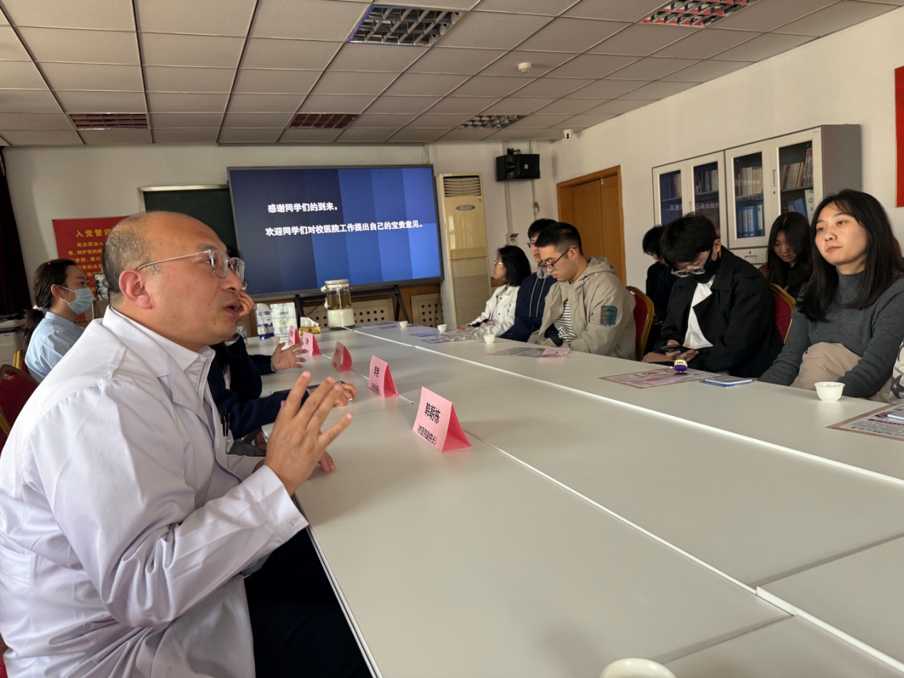 一年之计在于春”,在这个春意盎然、生机勃勃的四月,我校迎来了备受瞩目的校园接待日会议。2025年4月16日下午2时至4时,校医院接待各学院20余名同学代表开展学生接待日活动,在校医院许主任的引领下,同学代表来到了医院四楼的多功能厅开展了座谈会,医院副院长韩朝栋带领四名科主任及护士长出席了本次的座谈会,医院首先为学生们介绍了校医院医疗保障的相关政策,为大家介绍了《东北大学学生公费医疗管理办法》等。随后,对东北大学校医院做了一个简介。校医院争创“三好一满意”的校医院,在学校的领导和支持下,校医院狠抓医院软硬件建设和医疗服务质量,努力建设“服务好、质量好、医德好、师生满意”的校医院。校医院还为同学们播放了宣传视频,介绍了校医院的发展,医院的现有设施以及新开展的部门介绍。在进行完介绍环节后,学生代表们进行自由讨论,讨论结束后发起了一问一答式讲解,同学们向校医院提出了各自的问题,校医院的老师们为大家点对点的解答了大家困惑的问题,对于同学们提出的各项问题和建议,学校将进行系统的梳理和分类,并制定详细的工作计划和解决方案,认真落实每一项工作任务,确保问题得到有效解决,也为进一步提升校园服务质量提供了有力依据。