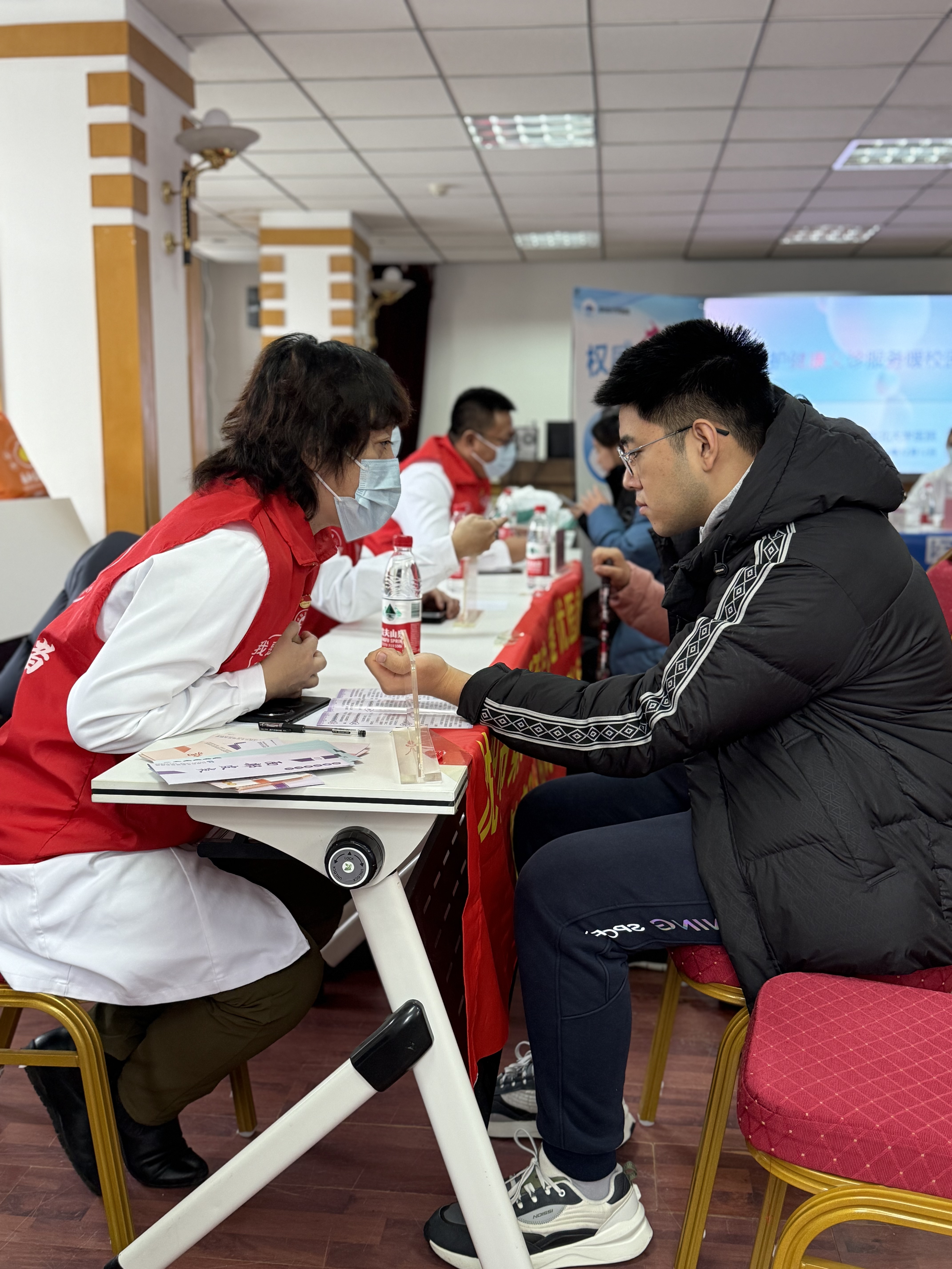 沈阳市第七人民医院的党员诊疗组堪称 “全能天团”,皮肤科、骨科、耳鼻喉科、心血管科专家齐上阵。针对湿疹、痤疮、荨麻疹等师生常见皮肤病,专家们细致问诊、耐心答疑,专业诊疗水平让不少同学直呼 “解决了困扰好久的皮肤问题”;同时,骨科、耳鼻喉科、心血管科的咨询台也排起了长队,全面满足不同群体的多样化健康需求。